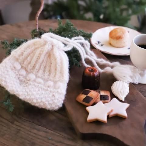 お菓子を入れるのに丁度良い大きさの巾着を編むワークショップ開催します。